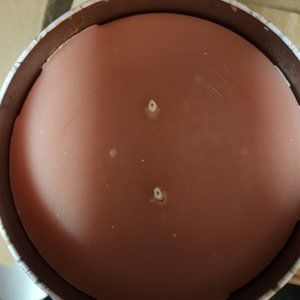 Decorative tin vessel with natural wooden lid designed to withstand outdoor elements