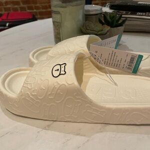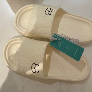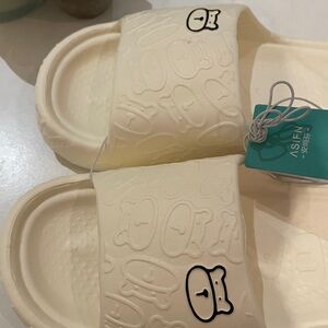 Brand New cream white teddy bear slip on slides slipper slide sandal size 38- 39