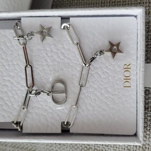 New silver Dior chain with 6x detachable charms : CD, Dior logo & 2x large stars & 2x mini stars