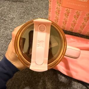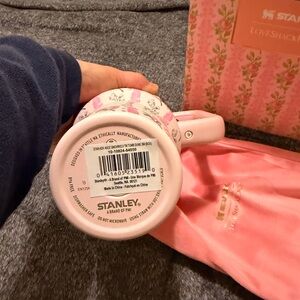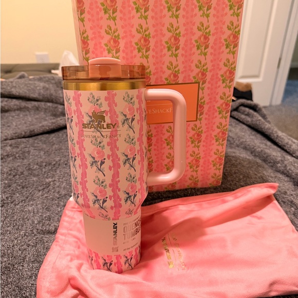 Brand new in Box Stankey x LoveShackFancy. Elegant Stanley tumbler with floral pattern. Features a pink handle and gold lid. 40 oz with straw and box cover.