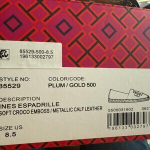 Brand New in Box – Tory Burch Ines Espadrille (Style 85529) Plum/Gold Size 8.5