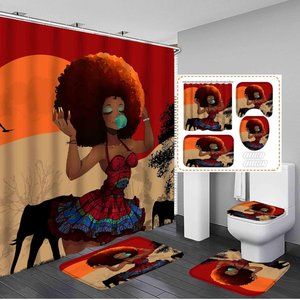 Brand New in Package African/ Black Woman Bathroom Set- Shower Curtain & Rugs