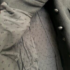 This gorgeous coat seems old-school handmade. Its lined in cotton lace. The details are remarkable.
