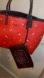 • Color: Red with floral print, brown handles