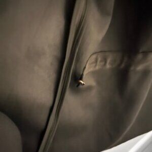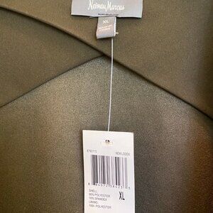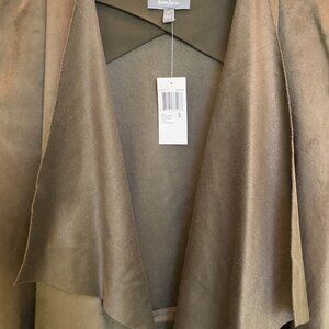 Newman Marcus Waterfall Collar Open Cardigan - suede-like textile. Inside the jacket, there are sewed in strings that allow adjusting the waist. It is a very pretty dark olive color. I am unable to capture the true color.