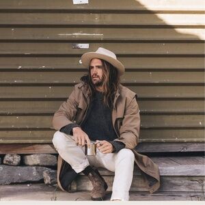 The Calloway is Will + Bear best selling style and is crafted from 100% Australian wool, and trimmed with their signature premium matte leather band. It has a stiffened 7cm wide brim, finished with a grosgrain bound edge to help it last the extra mile. A crisp teardrop pinched crown provides a distinctive silhouette. Timeless and approachable, the wide cream fedora is perfectly suited to any adventure.