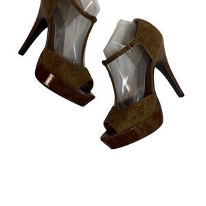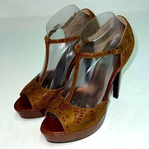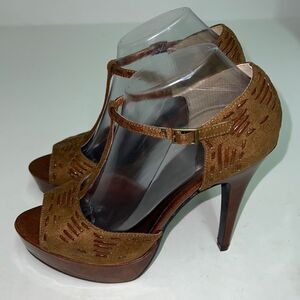 These shoes are brand new without box. Absolutely gorgeous, with a woven detail throughout the whole shoe. The platform measures approximately 1 1/4 inch and the heel measures approximately 5 inches. Please see all pictures for details and feel free to ask any questions, if interested