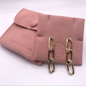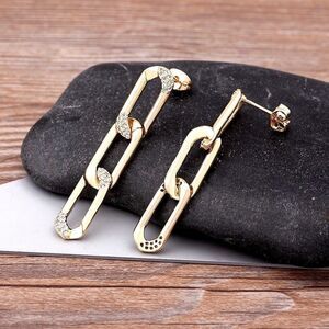 Brand New Gold Chain Link, Pave Detail Stud Dangle Earrings