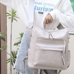 Brand New Grey Leather Backpack With Adjustable Shoulder Tote Strap