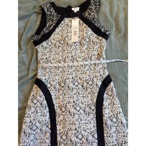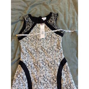 Brand New Parker Women's Large Black Cream Print Sleeveless Midi Dress