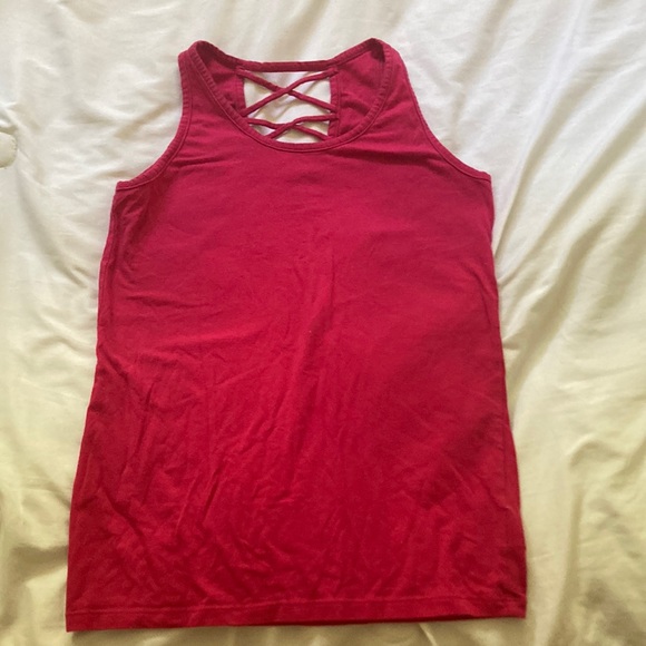 This tank top is from Old Navy. It is in a size XL in kids. It is very soft and good for working out in or just wanting to me comfortable. It is stretchy but hugs your skin. The design on the back is very pretty when on the body.