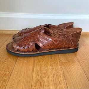 Brand X Huaraches Hand Woven Brown Leather Open Toe Slip On Sandals Women’s 10