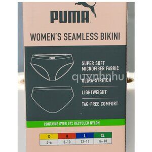 Brand new 4 pack women seamless bikini Puma super soft microfiber fabric ultra strecth light weight tag free comfort content over 57% recycled nylon