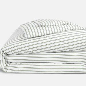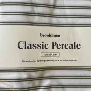 New in packaging, never used Brooklinen queen-sized classic percale duvet cover in Tandem Stripe in Fresh Moss color