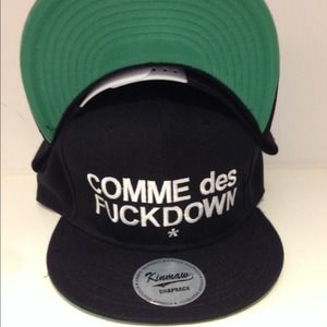 Make a statement with this hat! Brand new "comme des fuckdown " snapback hat with old school green under the bill.