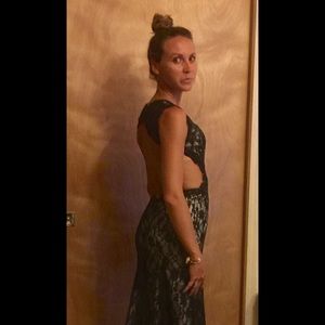 Brand new Black on nude long open back dress