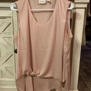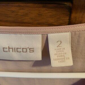 Chico's sizing-Size 2. Never worn, never washed. Lost weight ~Tons of unworn items listed from two overstuffed stuffed closets. Some with tags some with tags removed and tried on. Double layer front. Length 26 on one side-30 on the other swag side, Bust 45, sweep 48.