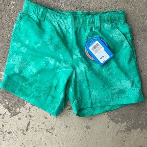 These shorts are in perfect condition! Brand new with tags. I absolutely love the color! These are a water shorts. They have mesh pockets. Approximate measurements are 15 inch elastic and drawstring waist 13 inches from waist to bottom of shorts. 5 inch inseam. As always, smoke and pet free home. Same-day shipping! Willing to negotiate prices.