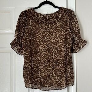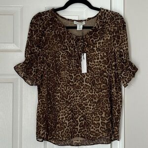 Brand new Cupcakes and Cashmere ruffle top. Size Small. Fully lined. Ruffle neck and sleeve details. Leopard print. Perfect for all seasons.