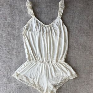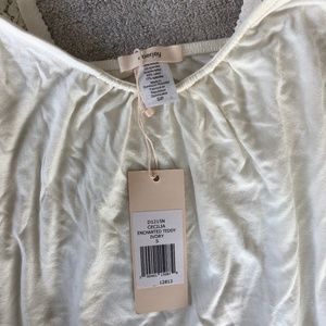 Brand new (with the original tag) Eberjey soft ivory romper. Very comfy and stretchy, romantic and sexy style. Great to sleep in or lounge around the house. Size S.