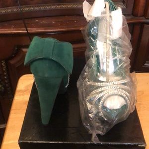 Beautiful Green with Silver rhinestone heels