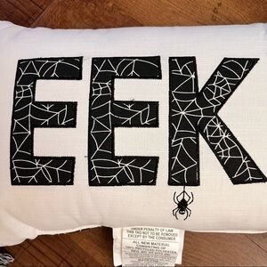 Brand new Halloween EEK! Pillow w/tassels black white spider webs rectangle