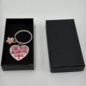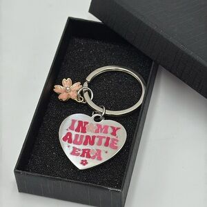 Brand new In My Auntie Era Keychain Heart Charm with Flower Detail