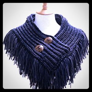 Infinity Scarf with fringes and button up detail colors available in purple, teal, gray, and black white