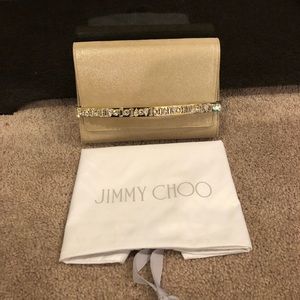 Brand new never worn Jimmy Choo Bow crystal-bar clutch bag in color sand. Comes with dust bag.
