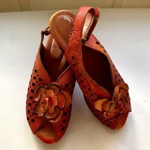 Very soft, comfortable and stylish brand new L'Artiste Spring Step open toe genuine leather heel slingbacks US size 7 EUR 37. Heel 2,5'' , perforated genuine leather,open toe and exclusive front decoration, rusty color.
