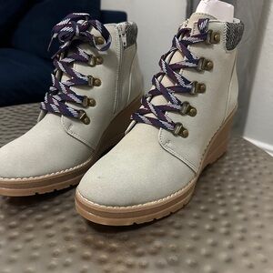 Brand new Maurice’s Claire Gray Knit Collar Lace Up Wedge-
