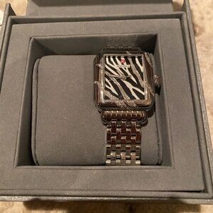 Brand new zebra and diamond MICHELE watch. Never used, but replaced battery and is ready for you to own. You won’t find another !
