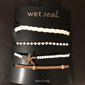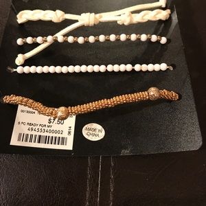 All items are brand new and have never been worn. Necklace from charming Charlie for $8, bracelets from wet seal for $7 and earrings from express for 16.90. I am selling all three as a combo for $17. No trade.