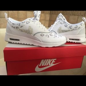 These Nike Air Max 8.5, are brand new never worn with box. The Nike swoosh has Swavorski Crystals that have been added by hand, to add some bling to the shoes!