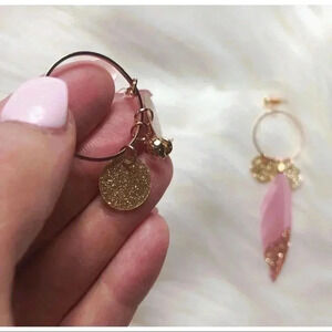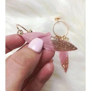 Brand new NWT pink feather earrings dipped in gold glitter.
