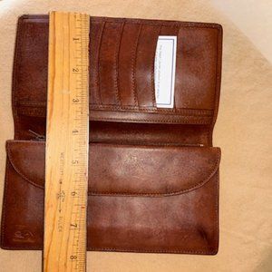 Very rare and leather bi-fold long wallet that has credit card holders, checkbook holder and zipper enclosure for coin compartment. Key Holder is a tri-fold with slots. Both wallet and key holder is made with pebbled leather and coffee brown leather trims. Wallet can be for the ladies and the key holder can be for gentlemen can just keep both for own use. with Please see pics for measurements. Comes in original box with serial number, description and card with care instructions. Excellent craftmanship with these pieces.