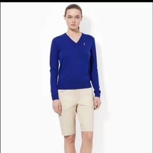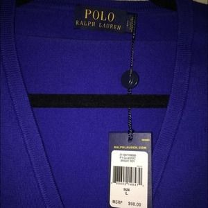 100% authentic Brand new with tags women's Ralph LARUEN MERINO WOOL V-NECK SWEATER in blue size LargeThis luxe sweater is crafted from ultra-lightweight merino wool and features a sharp V-neckline and our signature embroidered pony at the chest.