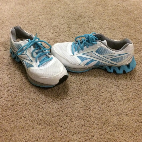 These shoes were worn once! They're light blue and white! They're as clean as can be! Only worn once!