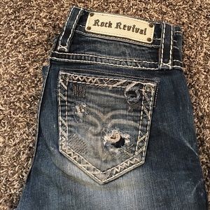 Brand new pair of Rock Revivals! They were purchased from buckle after I wore them I didn't like how it fit me. Size 25, from a pet & smoke free home.