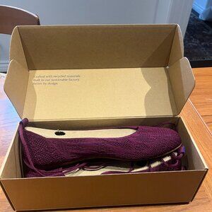 Soft, flexible upper in deep purple with a crochet floral pattern.