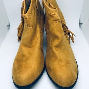 Brand new Shoedazzle Fringe Camel Booties size 8.5