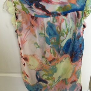 Brand new Simply Vera Top bright cheerful light and simply beautiful light weight button down along with neck tie..top no stains rips or smells from clean neat home ready to wear top has beautiful tulips sleeves silky material with watercolor look