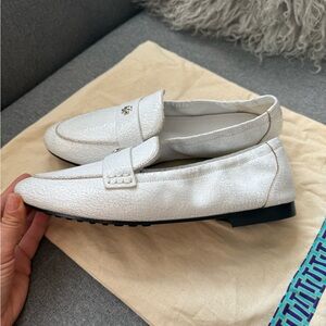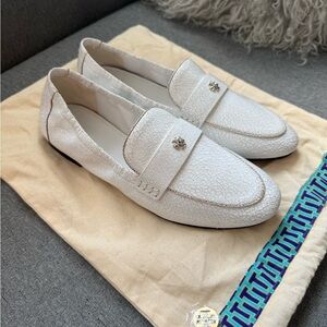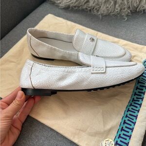 Brand new TORY BURCH sz 8.5 Ballet Loafer In Shiny White / Cognac 140881