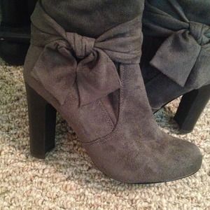 Never worn faux suede boots with bow details