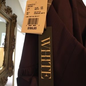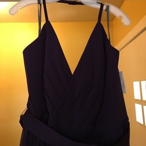 Size 18, never worn, with tags on. Lovely purple color with halter top.
