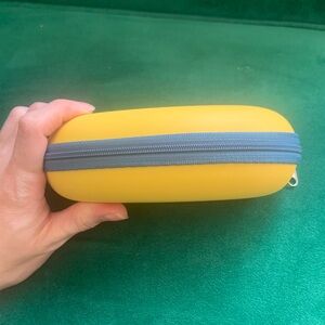 Super cute and quirky case from Vogue! Kids size. Yellow with blue lettering and a blue zipper. Cute giraffe on the front. Brand new, never used with a white glasses cloth still in the packaging. Message me with questions!