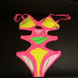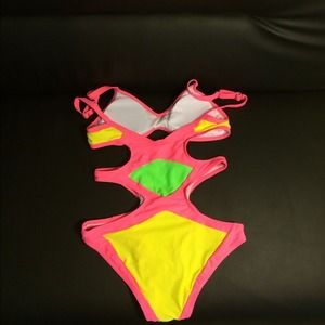 very cute and fashionable swimsuit. Pink, yellow and green monokini available in size small medium and large
