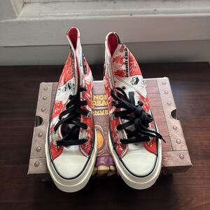 dungeon-inspired, cartoon graphics, high-top, monochrome, collectible, gamer style, slip-on, streetwear, fantasy, casual