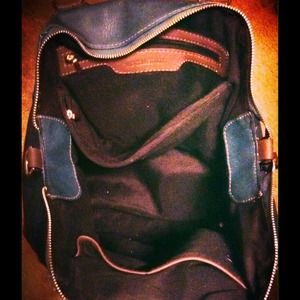 Brand new not even a month old, no rips or tears, no scratches, 3 zipper pockets, small divider pocket, cell phone and key pockets, large main compartment. False key accessory. Faux leather outside, cotton inside. Well made and sturdy. Measurements: width-17 in by height-12 in.