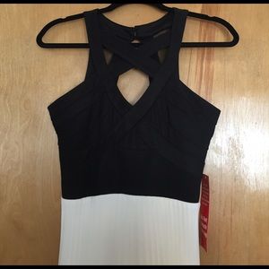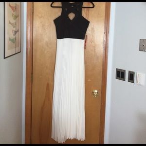 This is a brand new elegant formal dress. It has mesh panels in the back with two button and a zipper. Size 7 (not actual brand just listed for exposure).